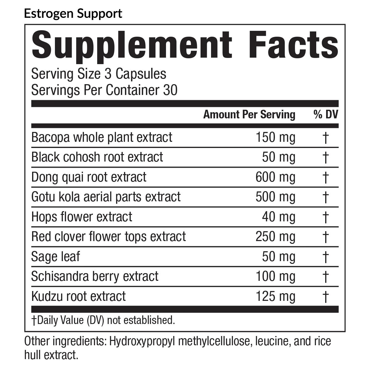 Estrogen is an important regulatory hormone in both men and women. It plays important roles in energy production, mood, concentration, and temperature regulation. In women, estrogen levels drop off dramatically during and after menopause. Estrogen Support uses the power of phytoestrogens, plant produced estrogen, to help increase estrogen levels, balance hormones and boost energy.