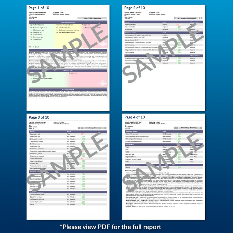 Are you under high stress, experience digestive issues or unexplained body pain, brain fog, low energy or headaches? If you’re doing your best to live a healthy lifestyle but continue to feel unwell, an imbalanced gut microbiome could be to blame. While trillions of microorganisms are found in our gut, it’s possible for them to fall out of their homeostatic limits. What’s more, we can acquire microorganisms that shouldn’t be present in our body. This simple lab takes a comprehensive look at key gut bacteria and parasite markers to identify any possible underlying imbalances.