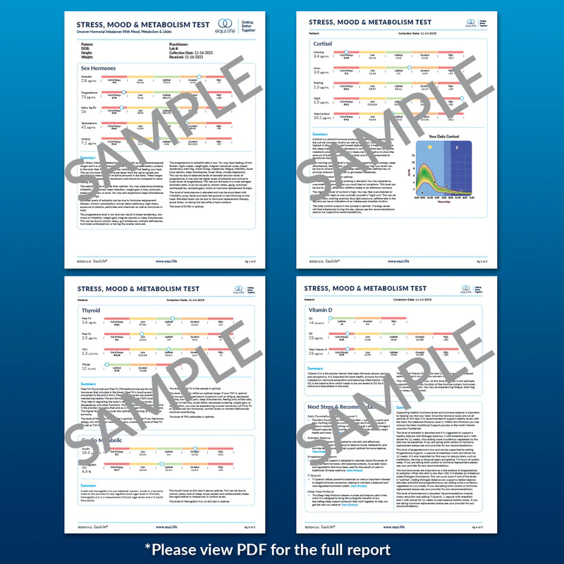 If you’re dealing with low mood or libido, slow metabolism or just feel you’ve lost your mojo it’s absolutely vital to look at your hormones. The Complete Stress, Mood & Metabolism test gives you the full picture to identify any imbalances directly affecting overall metabolic function. As we age, it’s even more important to keep hormones in check in order to manage stress effectively, maintain a healthy weight and have the energy you need. If you’ve struggled to lose weight and keep it off, this test takes all key hormones into account: thyroid function, adrenal output, blood sugar and vitamin D status.