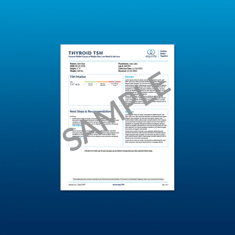 The thyroid is a small butterfly-shaped gland located near the throat. Although the organ itself is small, it has a significant impact on overall health. The thyroid produces countless hormones that affect nearly every tissue in the body. When functioning properly, it helps regulate everything from metabolism to sexual function. The Thyroid TSH Test looks at thyrotropin (thyroid stimulating hormone), a hormone that stimulates the thyroid into producing more of the important hormones needed to live a healthy life. If your levels of TSH are elevated or subdued, it may indicate that your thyroid is not functioning optimally.