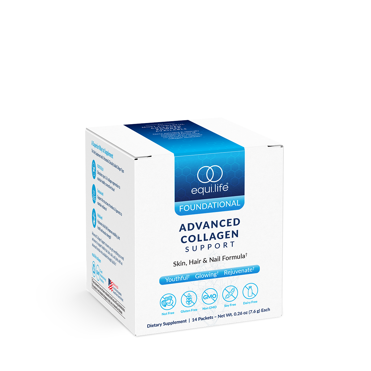The wear-and-tear of living takes a toll on our bodies, internally and externally. Properly maintaining healthy joints, tendons, cartilage, and ligaments can be a full-time job, not to mention that we all want to keep our skin looking healthy and radiant as well. Advanced Collagen Support provides patented ingredients clinically studied for their ability to improve the connective tissues in our body, plus support healthy hair, skin, and nails.