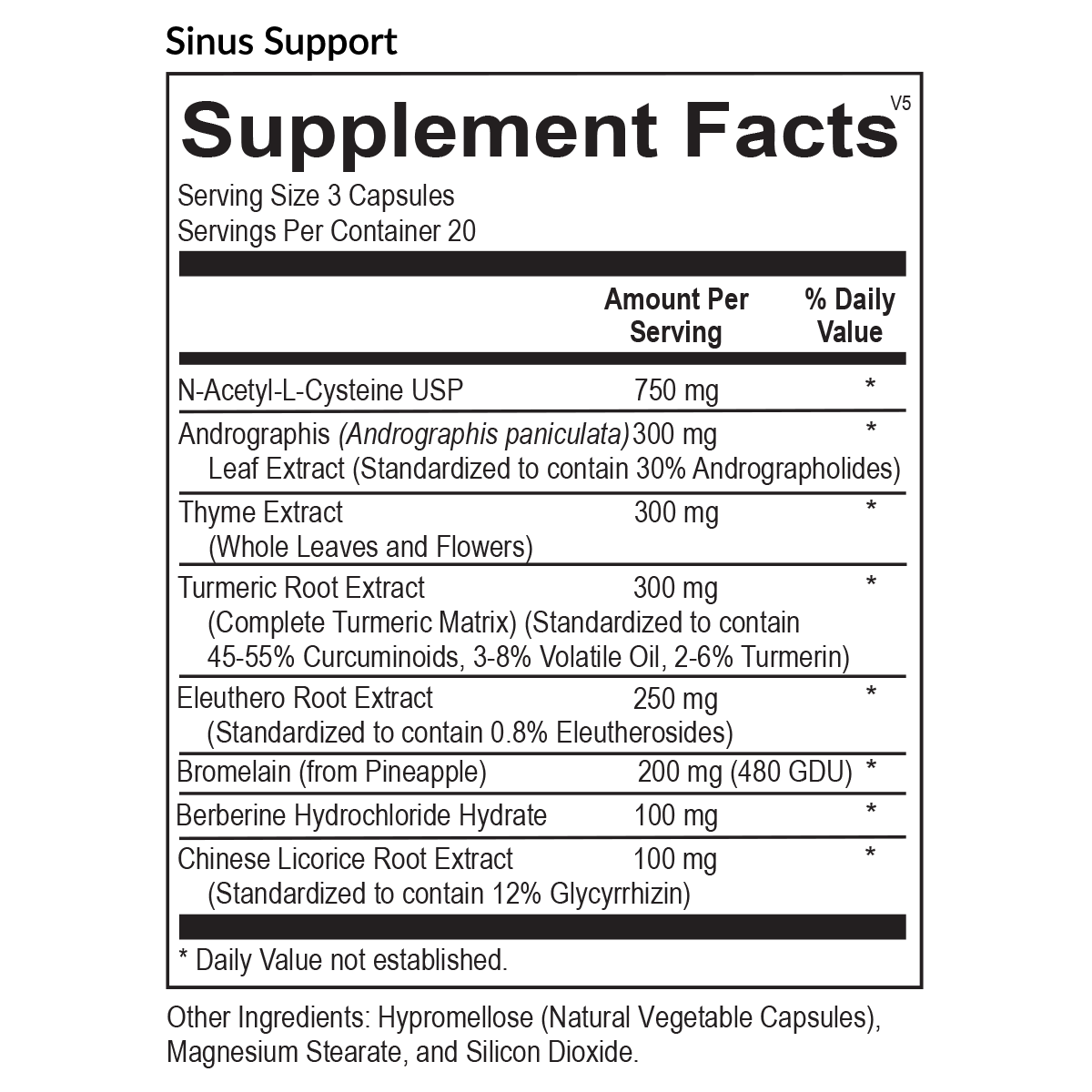 The sinuses are important pathways between the outside world and the body’s internal environment. Keeping your sinuses in good condition is critical in maintaining good health and feeling well. Sinus Support is a blend of powerful herbs, antioxidants, and amino acids designed to reduce mucus while simultaneously boosting the immune system.